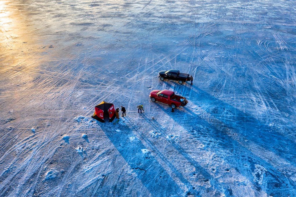 La ruta ideal para pescar en solitario comienza identificando dos o tres lagos pequeños y menos conocidos a poca distancia en coche, pero lejos de centros urbanos. Congelados en invierno, estos cuerpos de agua se convierten en un campo cristalino de posibilidades. Elige uno para pescar por la mañana, otro para descansar al mediodía y un último lago, un poco más grande, donde puedas prepararte para la sesión vespertina.